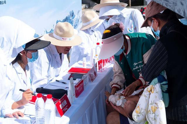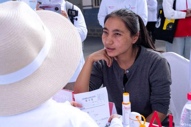 “公益不单纯是物资的捐赠,而是把科学护肤的理念传播给居民。”义诊现场,云南昆明市儿童医院皮肤科主任医师鞠剑波说。他举着手机,屏幕上是针对皮肤问题的护理指南,俯身向一位怀抱患儿的藏族母亲耐心讲解。他指着孩子脸颊上因干燥和日晒形成的皲裂红斑,“你看,像这样的高原地区,紫外线强、气候干燥,‘多擦护肤霜’‘注意防晒’这两件事,比吃药还关键。”面对每一位因日晒造成皮肤问题而前来求诊的居民,他都不厌其烦地重复强调。